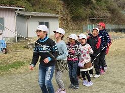短なわでは様々な跳び方に児童一人一人がチャレンジし、長なわでは1・2年生、3・4年生、5・6年生がそれぞれ合同で息の合った連携で記録を伸ばしていました。