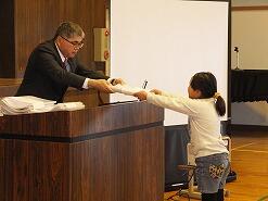 各学年の代表者が校長先生から修了証書を受け取りました。