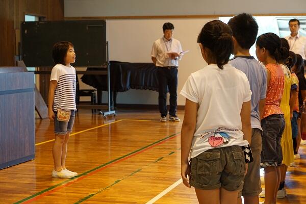 校長先生のお話や代表児童の発表、各先生方からのお話など、1学期を振り返り、長い夏休みを有意義に過ごすための式となりました。