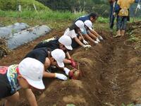 地域の方が育てられている芋ほり畑で、秋の収穫体験をさせていただきました。