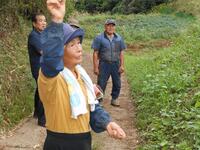 最後に、ワラでしっかりと結んだ稲穂を干していきました。こうすることで、甘みのあるおいしいお米ができることを教わりました。