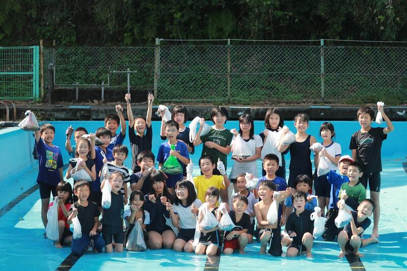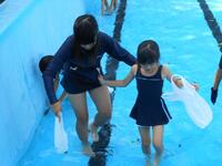 西臼杵漁業協同組合の皆様のご協力のもと、学校のプールを使用して、ヤマメを捕まえる活動です。