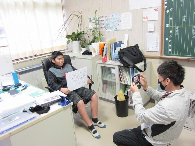 校長室で撮りたいという子どもがいて、せっかくなので校長室の椅子で撮ってもらいました。