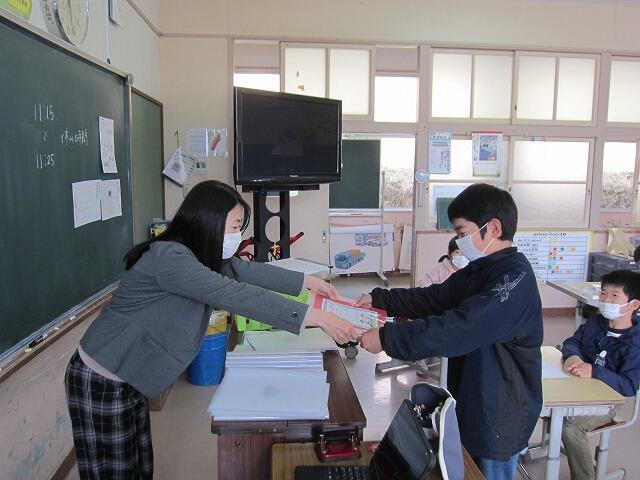 学級では、一人ずつ担任の先生から通知表をもらっていました。