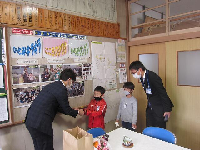 田原小学校を出られる先生方にPTAの方から記念品が贈られました。