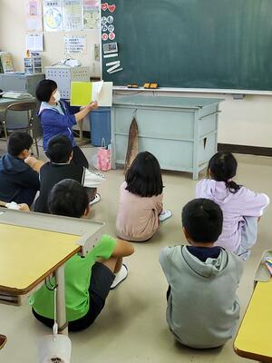 本日は6名の「クレヨンの会」に来ていただき、各クラス2名ずつ交代で読み聞かせしてもらいました。