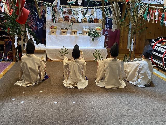 子どもの第2部が始まりました。本校児童2名と中学生(本校卒業生)が舞っています。