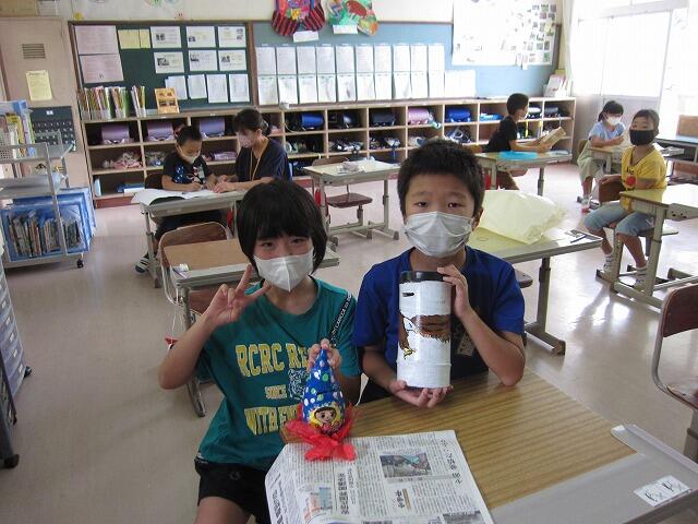 2・3年生は夏休みの作品を確認していました。作品の一部を紹介します。
