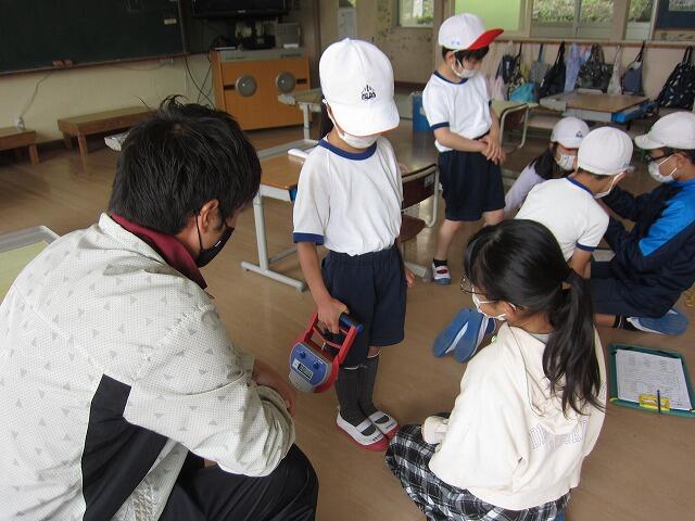 握力です。1年生も一生懸命力を込めています。