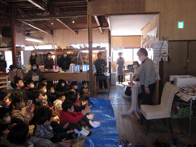 田原小学校下にある、地域のフリースペース「WACCHI」で読み聞かせの会がありました。名前を「よせなべ昔話語り」といいます。急遽だったのですが、田原小は全校児童で参加することにしました。