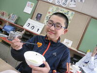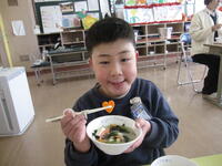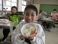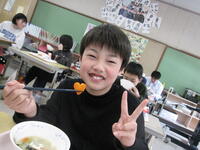 今日の給食は、今年度最後のしあわせにんじんが出ました。