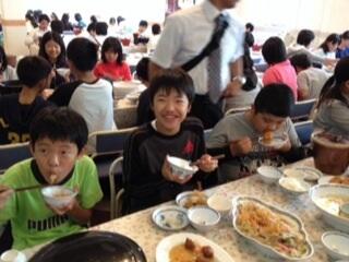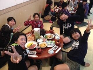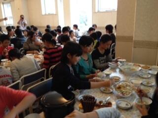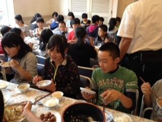 お昼ご飯はその班の友達と一緒に食べます。仲良くなった友達と笑顔で食事タイム♪
