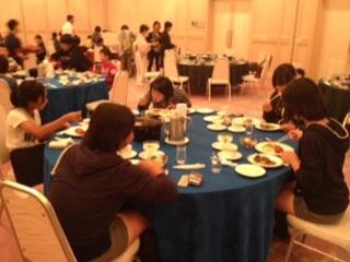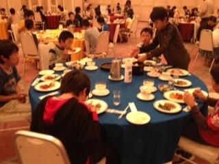 さっそく、夕食です。今日はなんと豪華な洋食です。部屋も結婚式で使う大きな部屋。