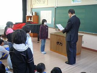 保護者や地域の方々が臨席される中、小学校4年生以上の児童生徒の意見文の発表や全校児童生徒から募集した標語の入賞作品の紹介、表彰が行われました。