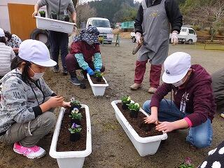 花の植え方を教えてもらったり、プランターを一緒に運んでもらったりと有意義な時間となりました。