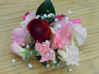 繊細な作業を重ね、田原地区で栽培さいれているラナンキュラスやスイートピーなどの生花を使ったすてきなコサージュができ上がりました。