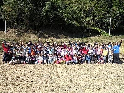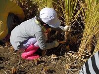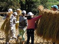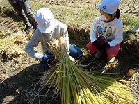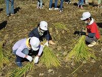 田原地区のJA青年部や保護者の協力をいただいたおかげで、低学年も鎌の使い方や稲の束ね方が上手にでき、充実した体験学習となりました。