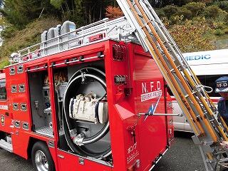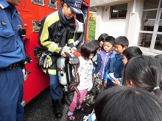 当日は、西臼杵広域行政事務組合消防本部の方に来ていただき、室内に充満した煙の中を避難する体験や消火活動に関するお話を聞くことができました。