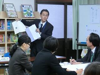 1年生と4・5年生の国語の授業の参観の後、授業研究会を行い、伝え合う力を高めるための協議が熱心に行われました。