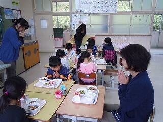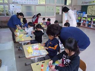 保育園の先生方に、小学校1年生の図工の授業や給食の時間の体験をしていただきました。