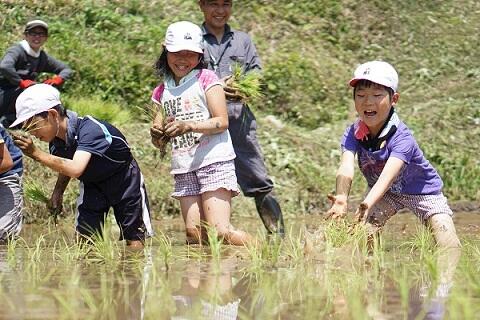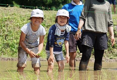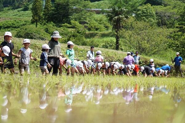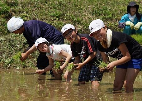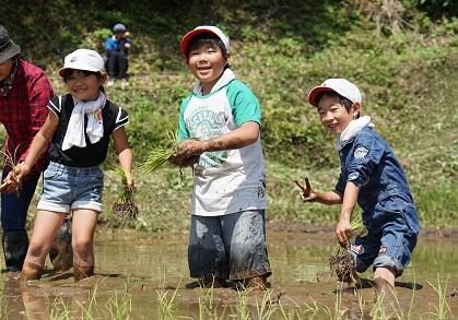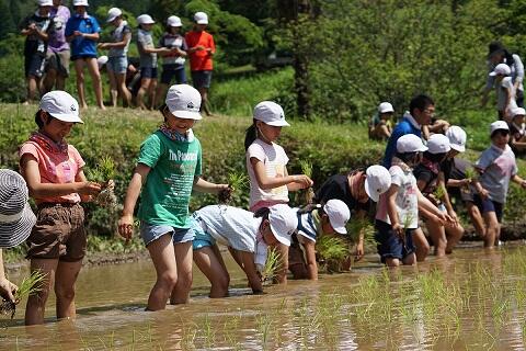 たくさんの保護者の方々やJA青年部の方々に協力していただき、1枚の田んぼを2時間程で植え終えることができました。
