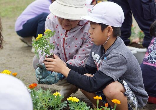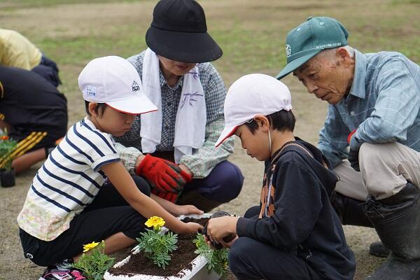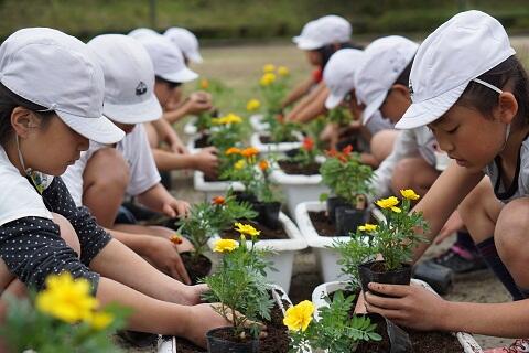 地域の方に協力していただき、全校で「花いっぱい活動」を行いました。