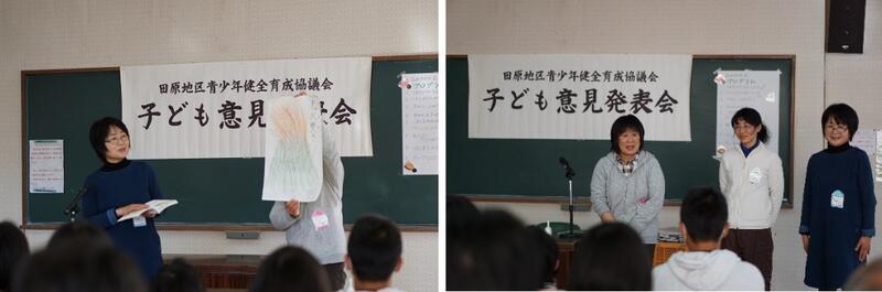 1月14日に田原出張所にて「田原地区青少年健全育成協議会 子ども意見発表会」が行われました。4~6年生代表児童による意見発表や、標語で受賞した児童の発表がありました。表彰がおわった後、おはなしくれよんのみなさんによる講演会(読み聞かせ)がありました。絵本のよさと楽しさを改めて感じることができました。
