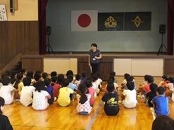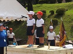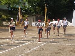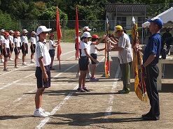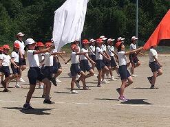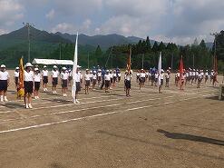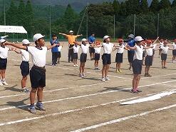 暑い中、エール応援も中学校生徒に負けないくらい大きな声が出ていて、小学校児童全員が一生懸命練習に取り組んでいました。