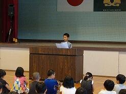 児童代表のあいさつ、そして校長先生をはじめ多くの先生方の夏休みの過ごし方に関するお話を、全校児童しっかりと聞いていました。