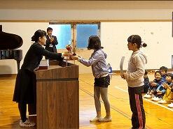 代表児童による2学期の振り返り、児童のピアノ伴奏による力強い校歌斉唱、先生方からの冬休みの過ごし方に関するお話がありました。