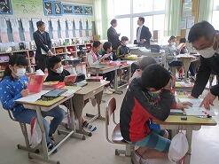 児童たちは、緊張した面持ちで真剣に授業に臨み、先生方は、いつもどおり熱心に指導されていました。