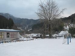 校庭は、一面の雪で真っ白です。