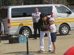 2月20日(木)、高千穂小学校の運動場で行われた「野球教室」に、田原小学校の1・2年生(7名)が参加しました。
