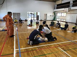 教育活動も次第に以前のように徐々に正常な状態に戻りつつあります。今月中旬からの水泳学習を前に、心肺蘇生研修を6月2日(火)に小中合同で行いました。当日は西臼杵広域行政事務組合消防本部と高千穂町消防団から講師をお招きし、主に心臓マッサージを中心とした救急救命について実技の研修を行いました。水の事故だけでなく不慮の事故もあってはならないことですが、万一の際に備える体制を確認しました。