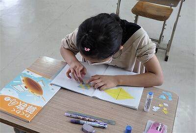 図形をつなぎ合わせることで、形の美しさや規則性を確認しています。