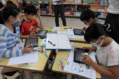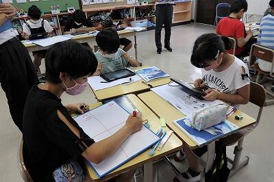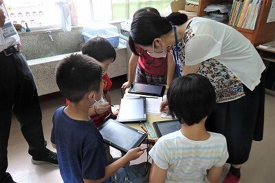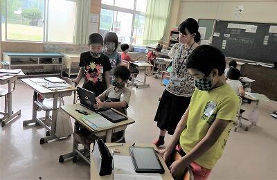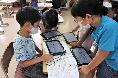 田原小では、タブレットなどのICTを活用した授業実践を行っています。
