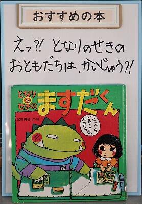 絵本コーナーは、「本の名前」の順番に並んでいることを確認しました。