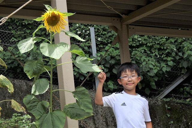 学校には、別のひまわりも咲いています。(以前の様子は、コチラ 絵文字:晴れひまわり