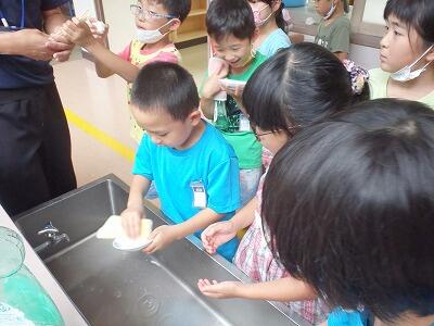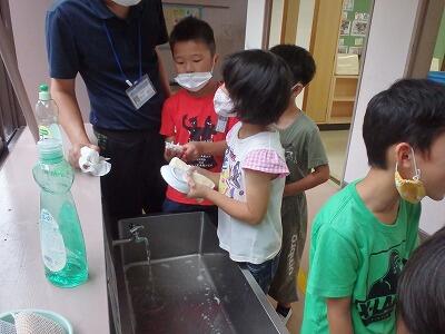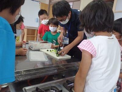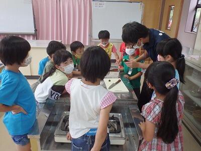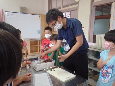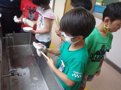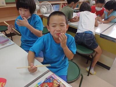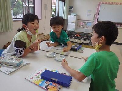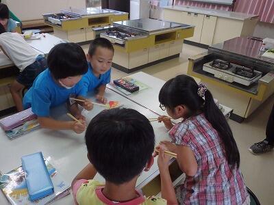 7月のある日、1・2年生が、家庭科室で「夏を楽しむ」活動②をしていました。