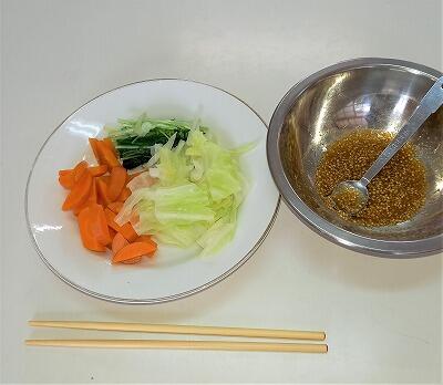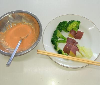 今回のテーマは、「ゆでる」野菜サラダです。  自分たちで「ゆでる」ことに適した野菜を考えました。