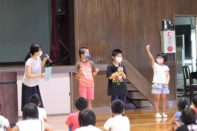 代表の4年生児童が、2学期にがんばることを発表しました。