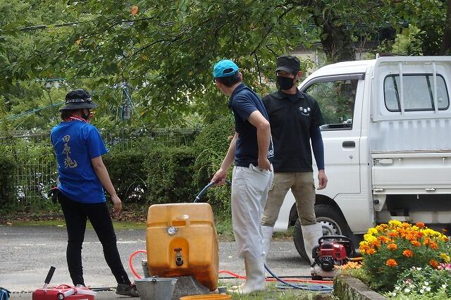 運動会に向けて、運動場に薬剤を散布してくださったのです。