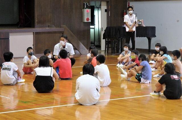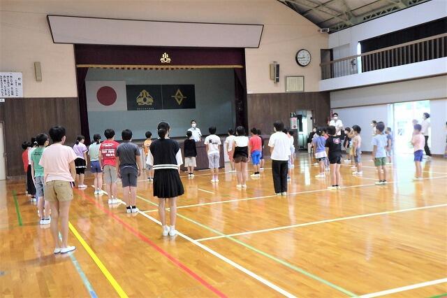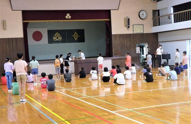 始業式では、田原小学校の全校児童と先生方が集合しました。