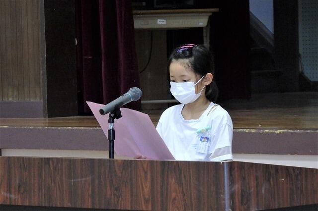 代表の4年生児童が、2学期にがんばることを発表しました。