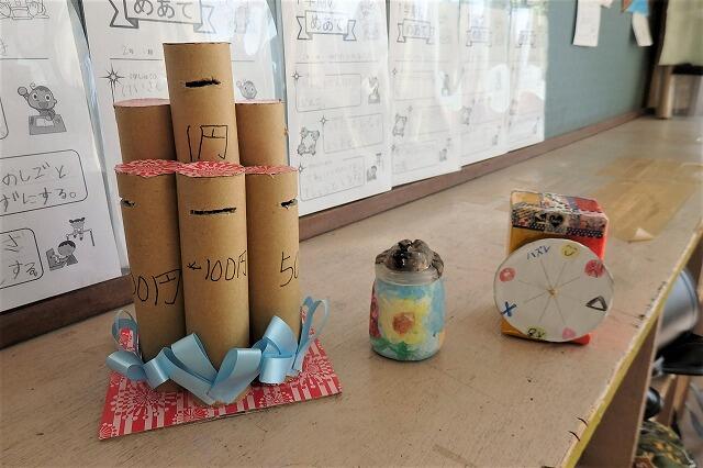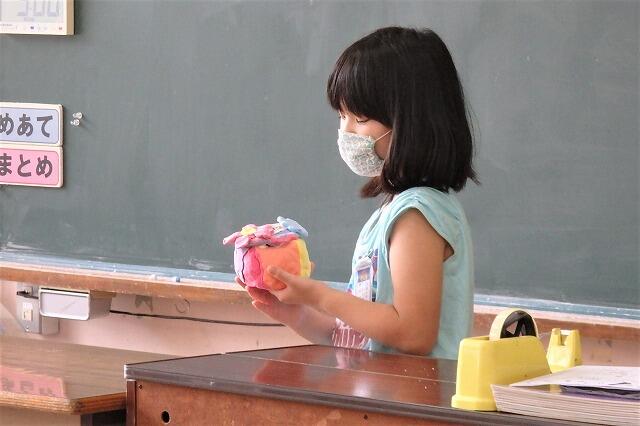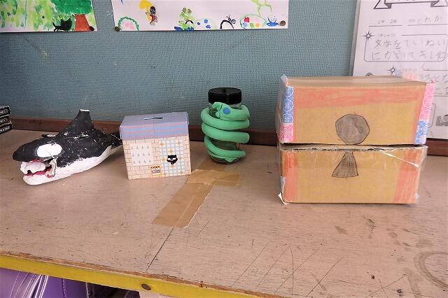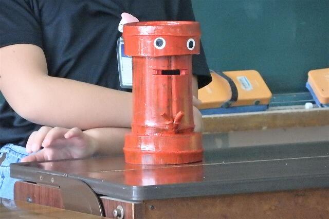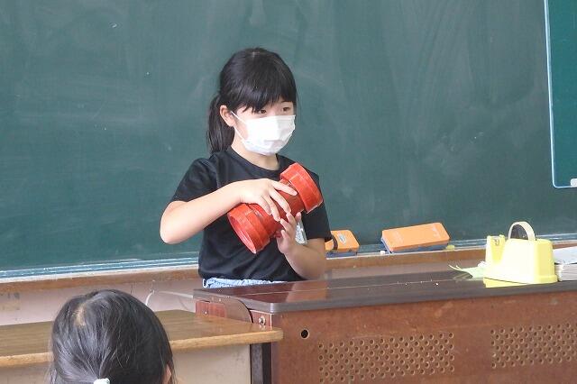 「竹でつくった貯金箱」について、発表する児童も聞いている児童も楽しそうでした。