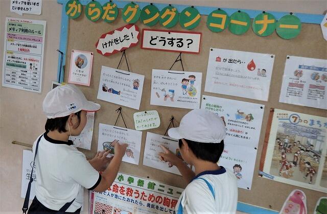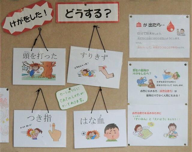 運動会の練習などでけがをした際どうすればよいか、資料が掲示されました。