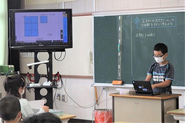 児童は、タブレットを活用して自分が考えた内容を説明しています。