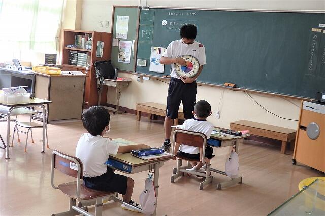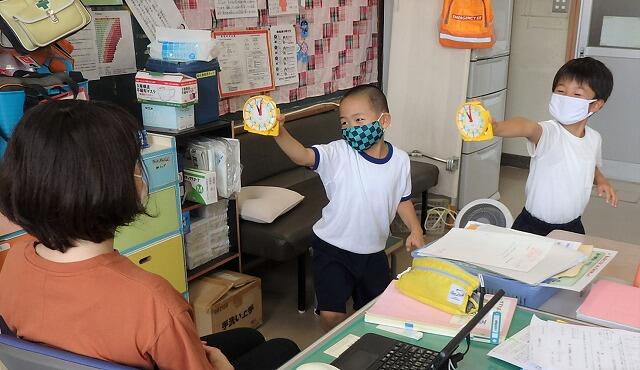 1年生が、時計を使って、時刻を表す学習をはじめました。