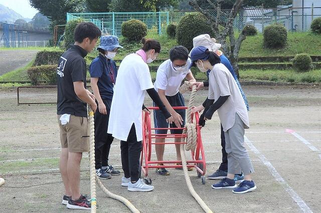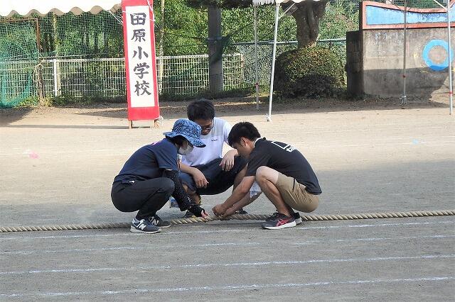 綱の片付けも全員で、一致団結しながら行いました。日曜日の運動会が、楽しみです。