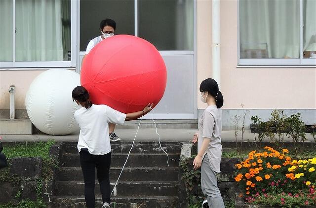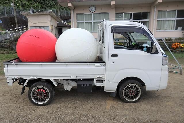 先々週の水曜日、運動場に赤と白の「玉」が届けられました。